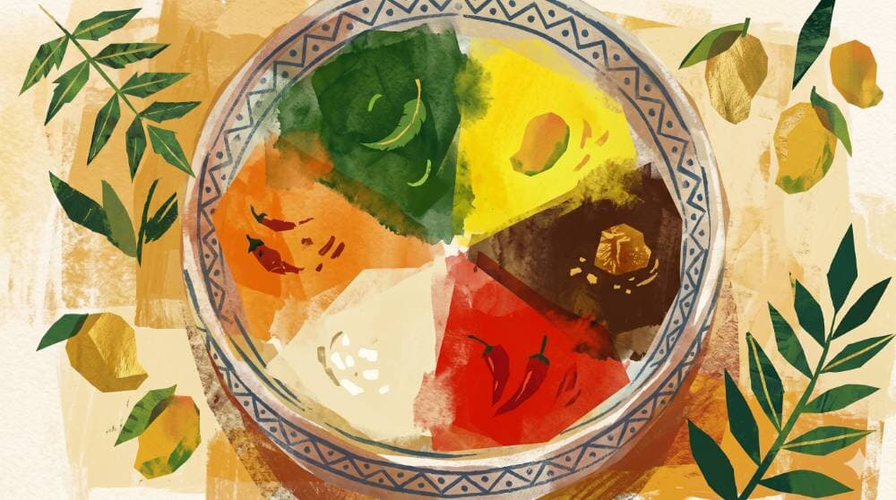 The first meal of Puthandu is built around a single, demanding idea: that a new year deserves all six tastes at once. Sweet from jaggery, sour from tamarind, bitter from neem flowers, heat from chilli, salt from raw mango — the pachadi holds them all, refusing to let you begin the year on just the pleasant notes.